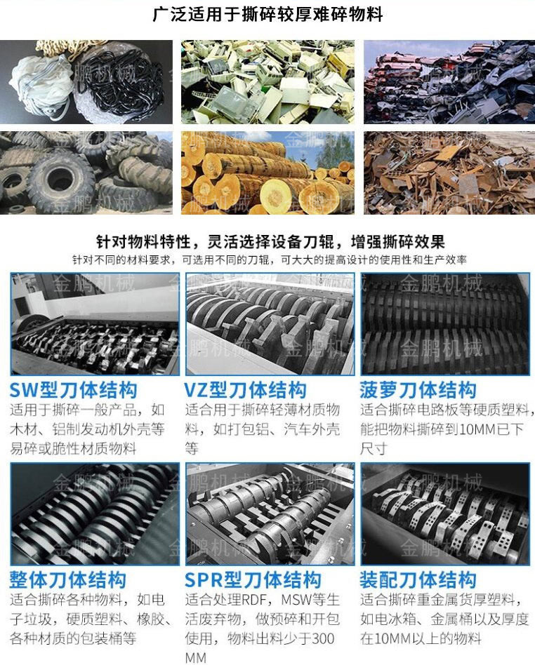 多功能撕碎機破碎范圍廣泛,能破碎橡膠,塑料,木材,金屬等多種廢舊物質(zhì)。提高了更多廢舊物質(zhì)的再利用價值.近幾年來,隨著塑料袋,蛇皮袋,噸包袋,漁網(wǎng),輪胎,薄膜塑塑料產(chǎn)品的廣泛使用,如何有效地回收使用過后的廢料已成了眾多生產(chǎn)廣家待解決的問題,有的廠家靠購買昂貴的或是高功率低效率的設(shè)備來回收,投資成本太高,有的塑料制品直接焚毀,影響了環(huán)境,也不利于經(jīng)濟的可持續(xù)發(fā)展。如何經(jīng)濟有效地回收廢品成了各生產(chǎn)廠家的一個重點研究課題。多功能撕碎機的出現(xiàn)就有效緩解了這個難題。