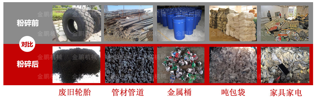 該機(jī)可廣泛應(yīng)用于木材、木材邊角料、木托盤、實(shí)木、樹枝油漆桶、廢棄家電外殼(塑殼、金屬殼)其它大體積廢棄物。